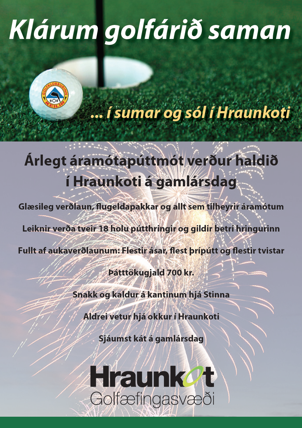 Þá er komið að hinu árlega Áramótapúttmóti Hraunkots sem fer fram á gamlársdag. Byrjað verður að pútta klukkan 10:00 og verður opið til klukkan 15:00. Glæsileg verðlaun í boði einsog ávallt. Aukaverðlaun fyrir flesta ása, flest þrípútt og flesta tvista. Stinni verður með kaldan á kanntinum og allt fljótandi í snakki og ídýfum. Leiknir verða tveir [...]