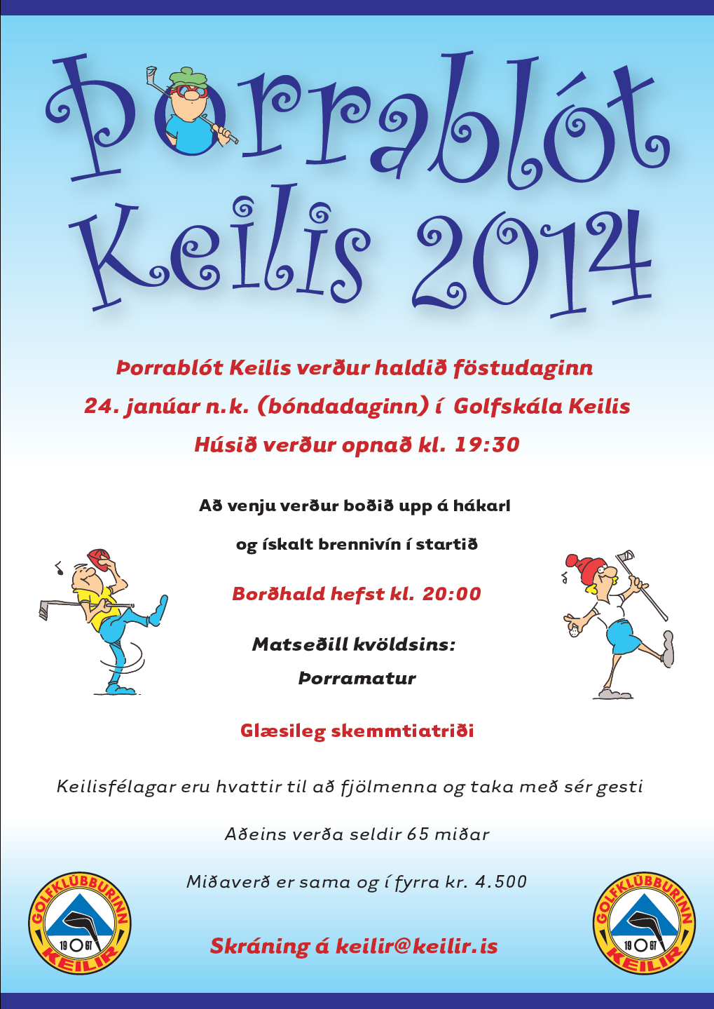 Þá er komið að árlega Þorrablóti Keilis. Að sjálfsögðu verður það haldið á Bóndadaginn 24. janúar einsog hefð er fyrir í Keili. Húsið opnar klukkan 19:30 og verður boðið uppá ískalt brennivín og hákarl í startið. Fyrir ykkur sem viljið ekki Þorramatinn þá verður pottréttur, þannig að enginn á að svelta. Blótsjóri verður enginn annar enn [...]