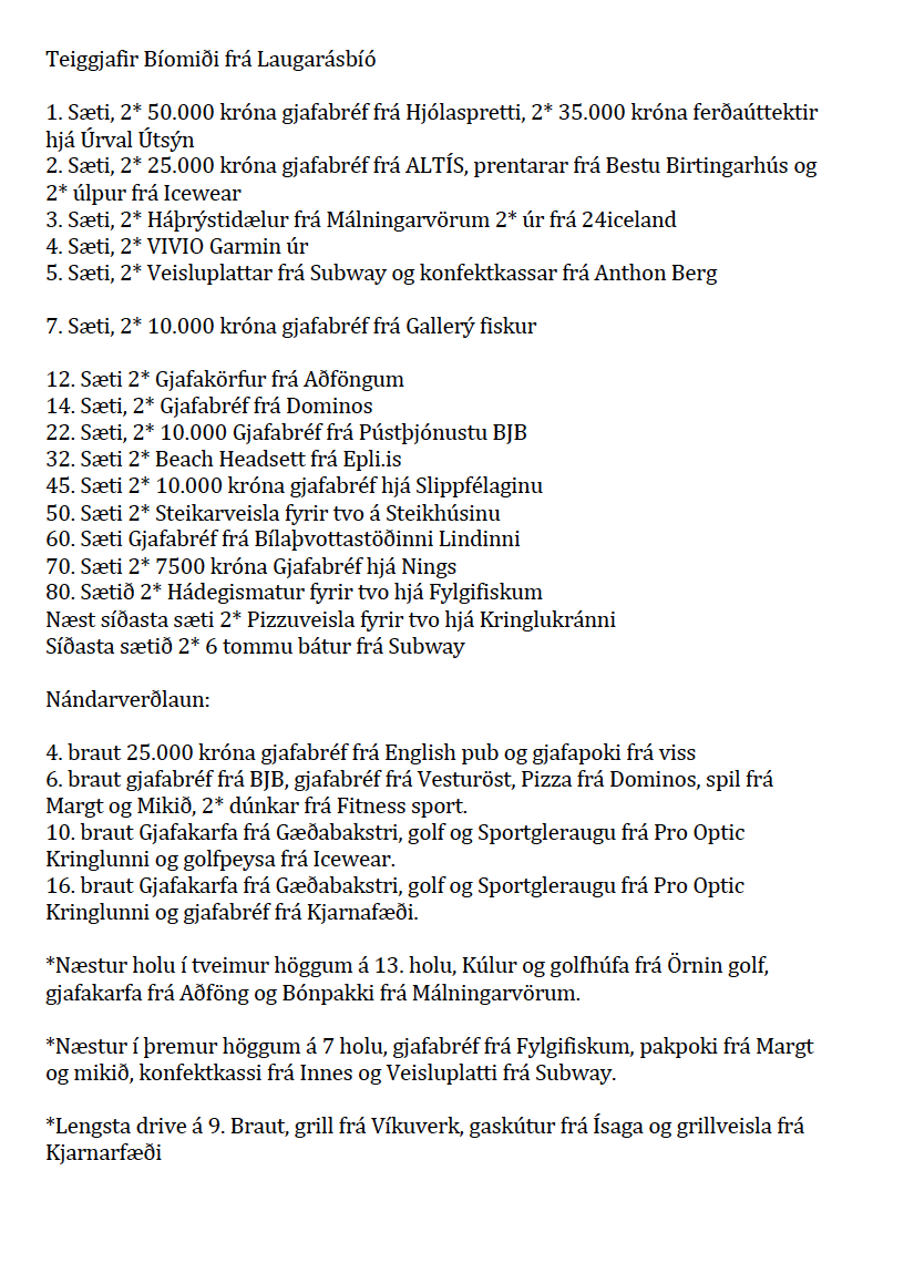 Mótið fór fram síðastliðinn laugardag, um 100 konur léku og þökkum við þeim fyrir þátttökuna. Höggleikur: Forgjöf 0-15 Anna Snædís Sigmarsdóttir GK 73 högg Forgjöf 15,1-24,9 Rut Einarsdóttir GR 89 högg Forgjöf 25 + Sigríður Helga Guðmundsdóttir GOS 92 högg Punktakeppni: 1. sæti Helga Ívarsdóttir GSE 41 punktur 2. sæti Elínborg Jóhannsdóttir GK 40 punktar [...]