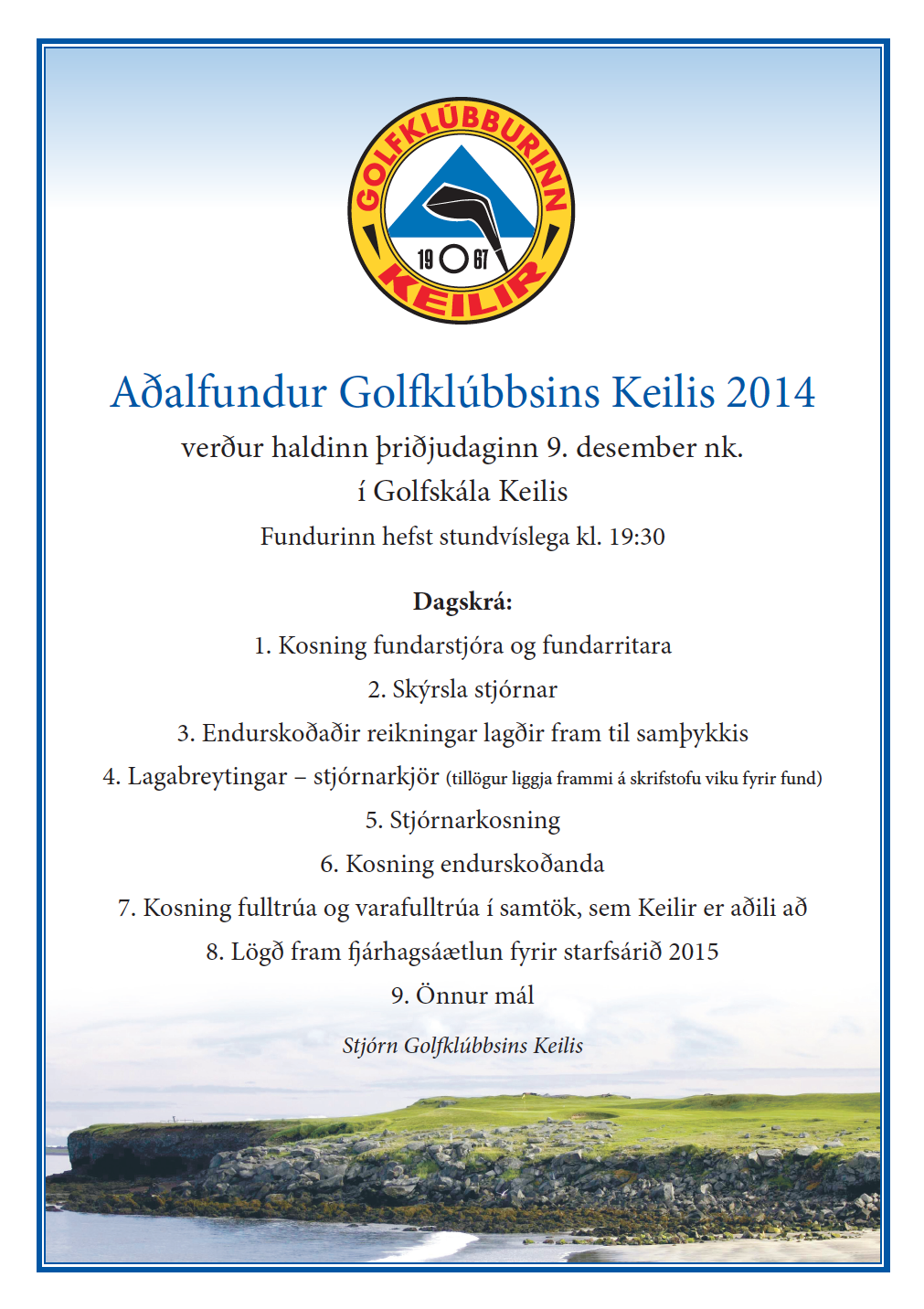 Það er hefð fyrir því að veita Háttvísibikar GSÍ, ásamt fleiri viðurkenningum á aðalfundi Keilis ár hvert. Þennan háttvísisbikarinn hlýtur sá iðkanndi í unglingastarfi okkar sem hefur vakið eftirtekt fyrir framkomu og æfingar á árinu. Fyrir árið 2014 hlýtur Steingrímur Daði Kristjánsson bikarinn. Steingrímur Daði er einn okkar allra efnilegasti kylfingur og vekur jafnframt eftirtekt fyrir [...]