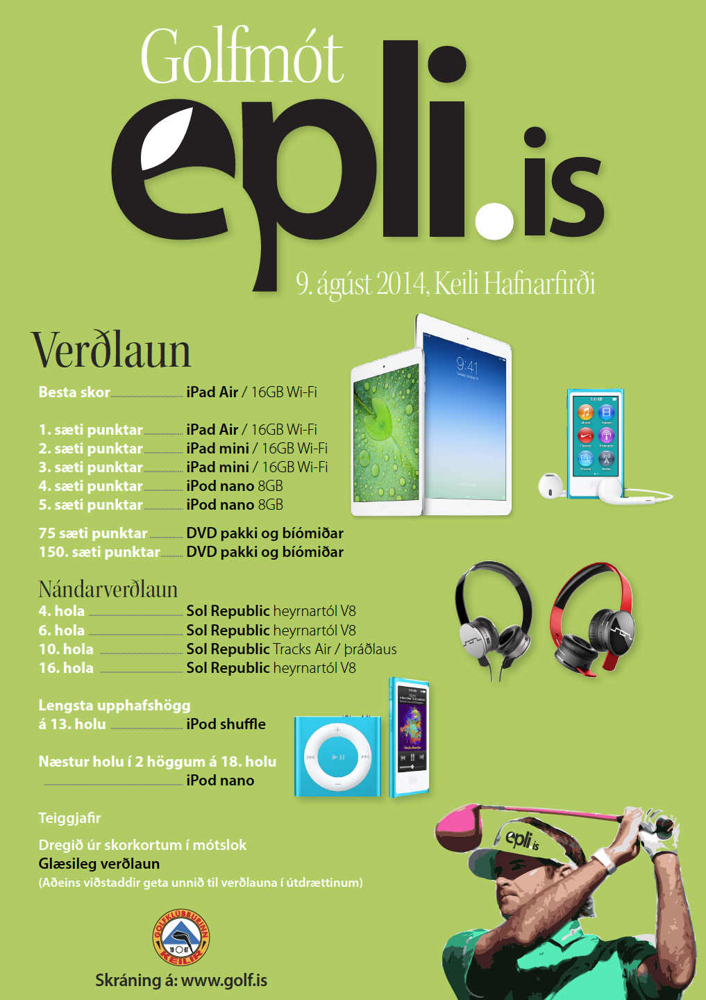 Núna í kvöld lauk glæsilegu opnu móti á vegum Epli.is og Golfklúbbsins Keilis þar sem keppt var um marga flotta vinninga. 209 kylfingar skráðu sig til leiks í þessu risamóti og var byrjað að ræsa út eldsnemma í morgun eða kl 06:50 og lauk ræsingu kl 15:30. Hvaleyrarvöllur auðvitað í flottu standi og veðrið reyndar líka, [...]