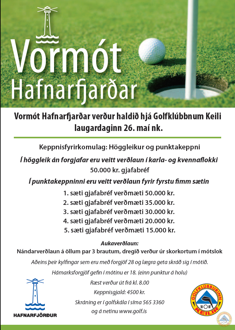 Um helgina voru 132 keppendur skráðir til leiks á fyrsta móti Eimskipsmótaraðar GSÍ. Þar af 24 frá Keili. Aflýsa þurfti fyrsta hring á föstudegi vegna veðurs. Óhætt er að segja að árangur helgarinnar hafi verið góður, sérstaklega hjá unga fólkinu en hjá körlunum urðu jafnir í 4 sæti Ísak Jasonarson og Einar Haukur Óskarsson. Hjá konununum varð Guðrún [...]