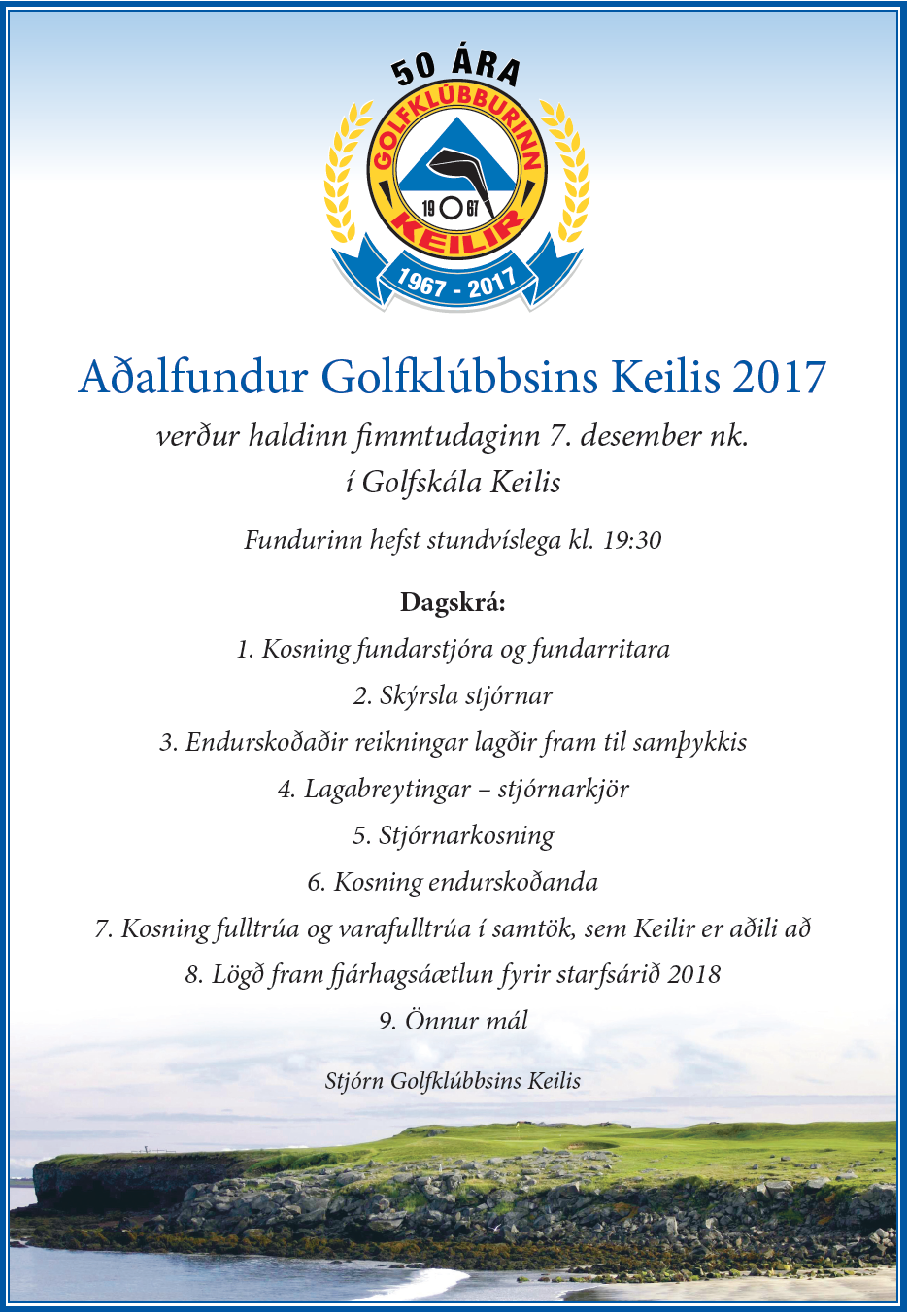 Aðalfundur Keilis fór fram í gærkvöldi að viðstöddum um 50 manns. Guðbjörg Erna Guðmundsdóttir var kjörinn nýr formaður klúbbsins. Er þetta í annað skiptið í 50 ára sögu klúbbsins sem kona er kjörinn formaður. Enn það eru 40 ár síðan Inga Magnúsdóttir sinnti formennsku í Keili. Einnig þurfti að kjósa um þrjá nýja stjórnarmenn í stjórn [...]