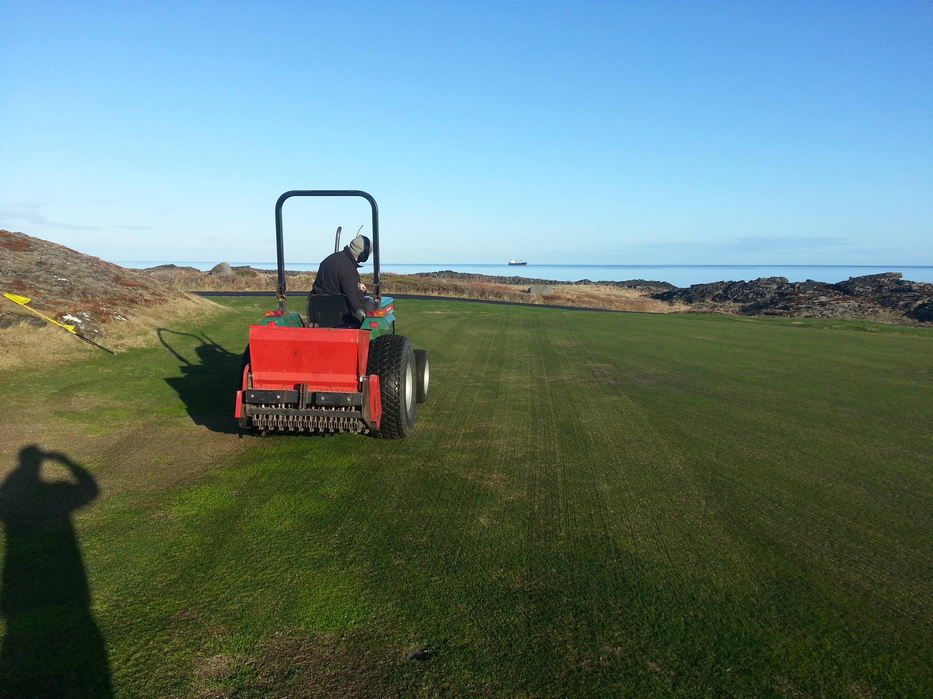 Í dag (miðvikudaginn 7. maí) er verið að yfirsá í flatirnar í hrauninu. Þetta getur valdið einhverri truflun fyrir kylfinga, en við reynum okkar besta til að halda fólki ánægðu. Þeir sem leikið hafa völlinn í ár hafa tekið eftir því að önnur flötin er frekar illa farin. Við munum yfirsá í hana í dag og [...]